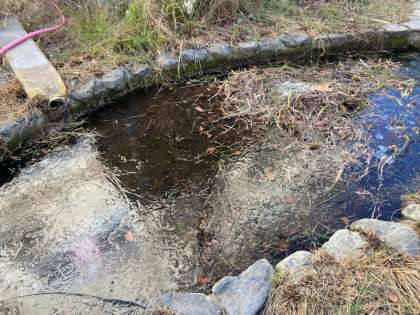 現在工事区画にあるひょうたん池には,午前10時半の段階でも,まだ氷が張っていました。