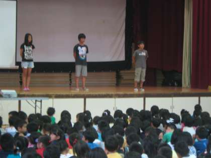 2年生は町探検のことを,4年生は社会科学習のことを,6年生は友だちとの関わりの中で自分を振り返ってのことを発表しました。
