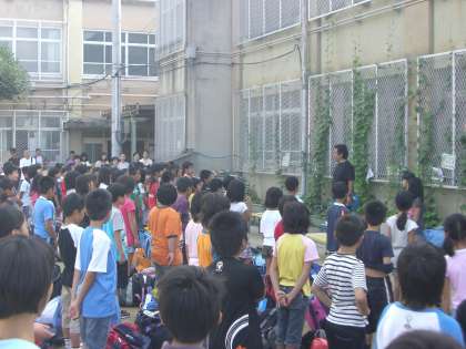 楽しみにしていた「みさきの家の活動」がスタートしました。朝,4年生の元気な笑顔がそろい,出発式を行いました。