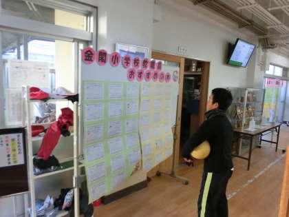 今日から2週間,読書週間を実施します。エントランスに,「教職員 おすすめの本」の掲示物を掲示しました。早速,読んでいる子どもたちの姿を見かけました。