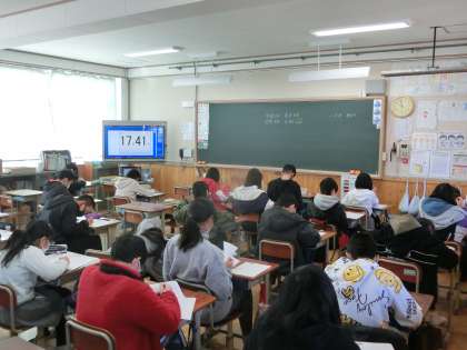 教室をのぞくと,緊張した雰囲気で取り組む様子が見られました。今日は,3年生で社会,4〜6年生で理科のテストを行いました。