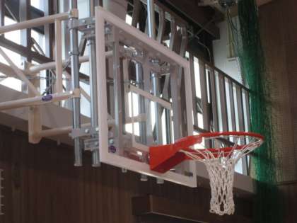 昨日はまだ取り付けられていなかった,バスケットボールのゴールが,今日は取り付けられています。新しいゴールの板は,透明です。ちょっとかっこいいです!