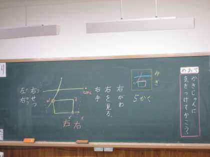 1年 国語科 漢字の学習〜今日は「右」〜