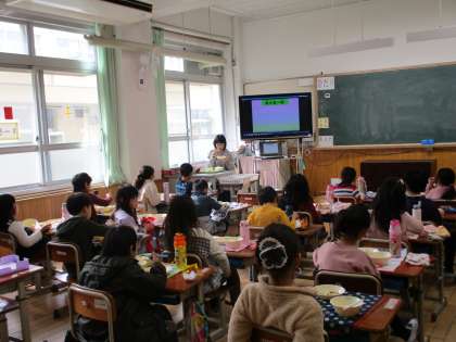 教室では,和(なごみ)献立について知る映像を見て勉強をしました。