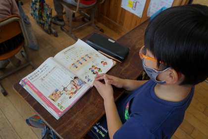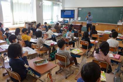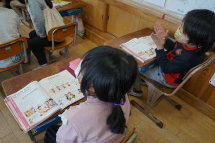 「あんたがたどこさ」や「ずいずいずっころばし」などのわらべ歌を楽しみました。初めて聴く子もたくさんいたようです。道具がなくても楽しめる昔の遊びの知恵を知りました。