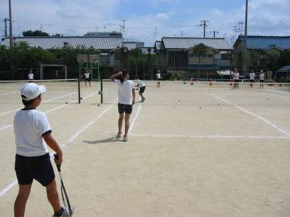 今日は朝からぎらぎら太陽が照りつける日差しの中,子どもたちはプールにバレーボール・陸上・サッカー・テニス と 汗だくでファイトいっぱいに活動しています。