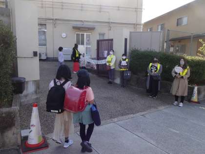 今朝は,PTA本部役員の皆様が,東門と西門に分かれて立って下さり,挨拶運動をしてくださいました。子どもたちは,元気よく「おはようございます!」と挨拶して,登校してきました。