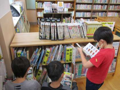学活で係が決まり,3年生の乗り物係さんが乗り物の本を借りに来館しました。「ぼくははたらく車のカードを作ってみんなに見てもらいたい。」「ぼくはスーパーカーを書いてみんなに知らせたい。」など本を使ってわかりやすく絵や言葉で友達に伝えるそうです。できあがったらぜひ見せてほしいです。