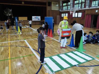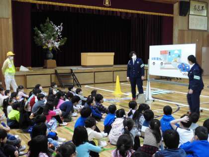 1年生は「交通安全教室」に参加しました。横断歩道を安全にわたるには・・・「待つ場所」「動いている車やバイク・自転車の確認」そして「信号の色」など,みんなで話し合い,確認し,実際に体験しました。いよいよ来週からは自分たちだけで下校します。交通ルールをしっかりと守り,安全に下校ができるようにしましょう。
