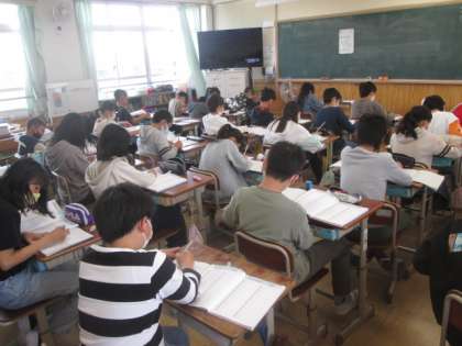 掃除時間が終わってから分10間は,今年度も昼学習の時間です。掃除時間が終わってすぐ,6年生は早速学習を始めています。静寂に包まれた張り詰めた空気の中,子どもたちが一生懸命机に向かっている様子は,「さすが6年生!」と感心させられます。