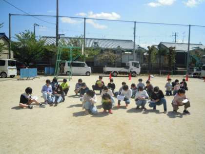 5年生の理科では天気の情報という単元で,日ごとの雲の様子の観察を行っています。さわやかでとても良い天気の中,ゆったりとじっくりと雲の様子の観察ができていました。