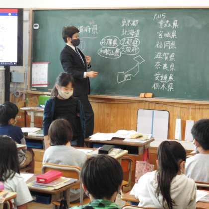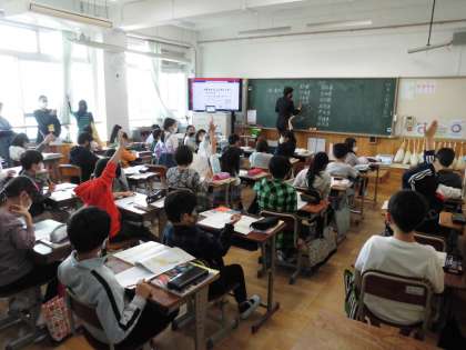 4年生は,地図帳を片手に日本の中の「京都府」に着目し,近くにある府県の名前や場所について学習していました。たくさん手を挙げて発表する積極的な姿が見られました!