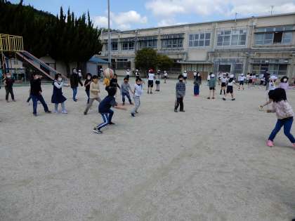 体力向上を目指して,学校でパワーアップタイムに取り組んでいます。第1回はドッジボールをしました。みんなで活動する有意義な時間でした。