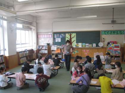 第2図書館で,学校司書の図司先生に,読書ノートの使い方等,いろいろなことを教えていただきました。去年も図書館でたくさん本を読んだ子どもたち。2年生に進級して,図書館と教室が同じ階になり,より行きやすくなりました。今年もたくさんの本を読んでほしいです。