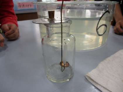 前回の実験で,「びんの中でものが燃え続けるには,空気が入れかわる必要がある。」ということを学習しました。今日の実験では「空気中にある気体(ちっ素,酸素,二酸化炭素)には,ものを燃やすはたらきがあるのだろうか。」ということを調べました。実験しながら,予想と違う結果に驚いたり,予想通りだと確かめたりすることができました。結果をもとにそれぞれの子どもたちが考察を行い,「酸素には,ものを燃やすはたらきがある。ちっ素や二酸化炭素には,ものを燃やすはたらきがない。」ということを結論づけることができました。