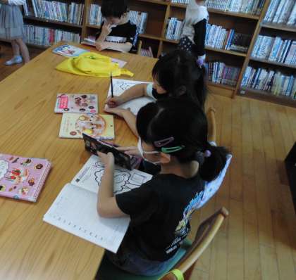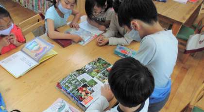 見出しを見て「先生〜,キウイフルーツやパイナップルにも毒があるみたい!」と興味津々の様子でした。本から多くのことを発見したようです☆