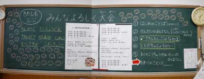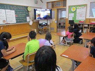 北下支部の7校の学校の育成学級が集まって毎年行う「みんなよろしく大会」ですが,今年度は,リモート集会としてテレビ画面を通して交流しました。「きたしもしぶのうた」を歌ったり,各校の紹介をお互いに見合ったりしました。顔を合わせて交流できる日が楽しみです。