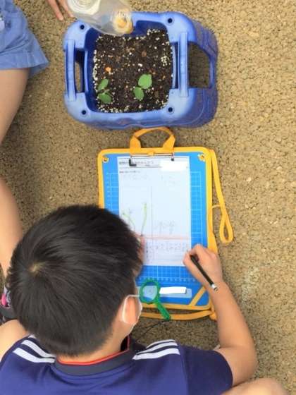 葉の色や形をスケッチし,高さや葉の数など,気が付いたことを記録していました。