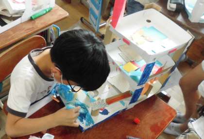 カラーペーパーや段ボール紙を使って,滑り台やトンネル,好きな動物などを作り,のりで貼り付けていました。完成が楽しみです☆
