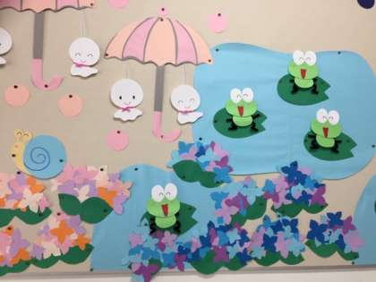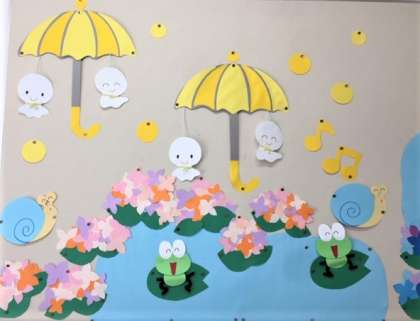 今年は京都市の梅雨入りが史上最速だったようです。これからも少しの間,雨の日が続きますが,子どもたちも教職員もとってもかわいい「てるてる坊主や紫陽花・カエル」に癒されています☆ご来校の際は是非,ご覧ください。