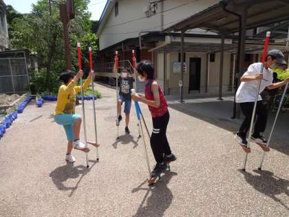 今年度より竹馬を整備し,本日より使用可としました。中間休みから早速たくさんの児童が竹馬にチャレンジしていました。朝会で伝えた約束を守って,みんな楽しく取り組んでいました。初めて竹馬にチャレンジする児童も多く,みんな苦戦してましたが,コツをつかんですぐに乗れるようになった児童もいました。