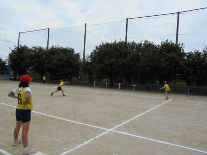 5年生の体育科「ベースボール」の学習の様子です。守備と攻撃に分かれて,それぞれ練習を積んでから,試合を行いました。