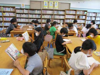 今日は5年生が来館しました。貸出後,少し読書ができる時間がありましたが,教室での学習の時間と同じ姿で,姿勢よく静かに集中して読んでいました。図書館を利用するマナーも身についていますね。