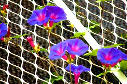 昨年度栽培した「西洋朝顔・ヘブンリーブルー」とまたちがった花色でとっても鮮やかです。