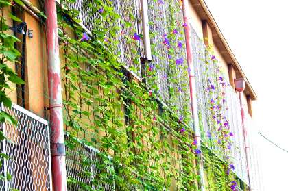 みどりのカーテンのオーシャンブルーがはなざかりです。