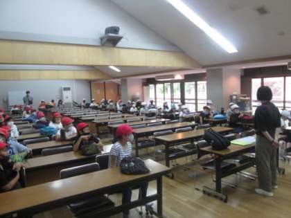 入所式が終わって,研修室に入れていただき,自分たちの荷物の整理などをしました。宿泊棟に入ることができるのは,午後3時以降なので,それまでは本館で過ごします。このあと,食堂でお昼ご飯をいただきます。