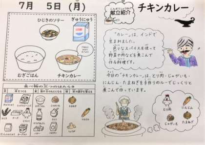 本日の献立は「ひじきのソテー,牛乳,麦ごはん,チキンカレー」です。じっくりと煮込まれた「チキンカレー」はとっても美味しかったです☆