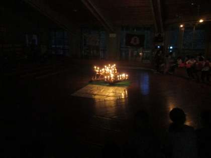 残念ながら,お天気が味方をしてくれず,キャンプファイヤーは,室内でのキャンドルファイヤーに変更して実施しました。