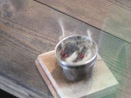 ついた火をろうそくにつけて,このあとの野外炊事の火として使います。