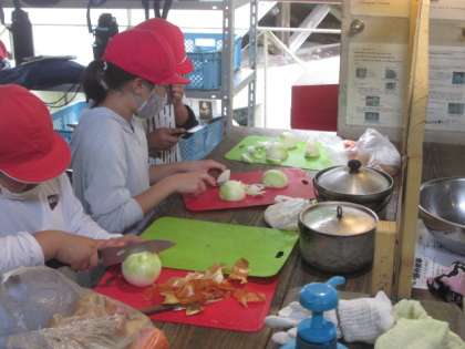 いよいよ,野外炊事です。グループで協力してカレーライスを作ります。うまくできるか,どきどきわくわくする時間です。