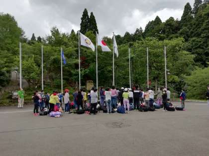 2日間お世話になった花背山の家を退所します。短い期間でしたが,お世話になった所員の方々に感謝の気持ちをもって退所式に臨みました。