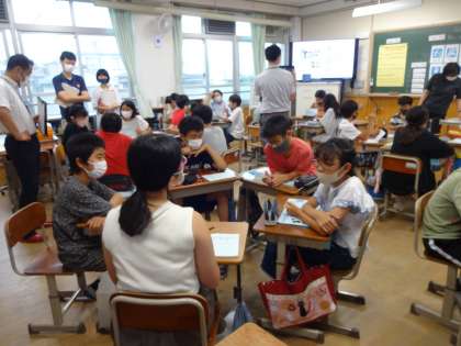 今日は,大学の先生や指導主事の先生,衣笠中学校の先生が来校し,6年い組の授業を参観されました。