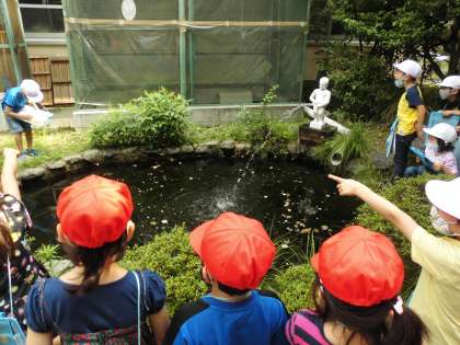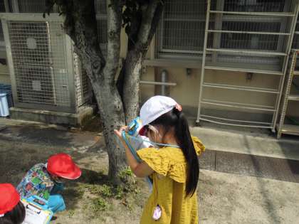 1年生は生活科「なつだ とびだそう」の学習で夏の生き物や自然の様子を観察し,カードにかいていました。「セミの鳴き声がたくさん聞こえる!木に抜け殻がついてる〜!!」や池の周りでは「シオカラトンボが〇〇さんの帽子にとまってる!!」など,夏見つけを楽しんでいました☆