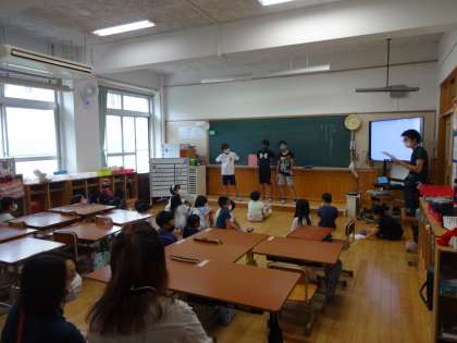 本日5校時に,夏休み前の町別集会を行いました。各町の愛護委員さんにも参加していただき,夏休み中のラジオ体操についてや,登下校時の安全確保・各町での危険な場所などについて,お話をしていただきました。