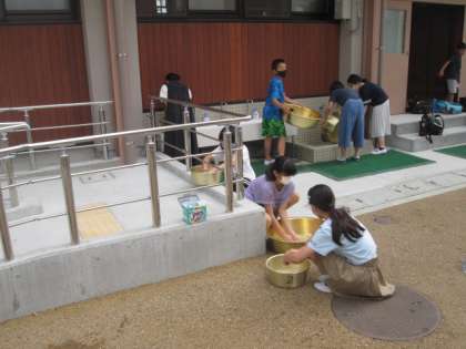 家庭科の学習で,洗濯の実習をしました。洗ったのは,「くつした」です。手洗いで洗濯をする機会は現在はほとんどないですが,もみ洗いの仕方も,しっかり覚えておいてほしいです。