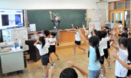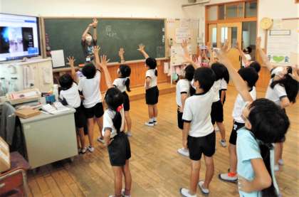 担任の先生が事前に自撮りした動画を見ながら振付や動きの確認をしていました☆