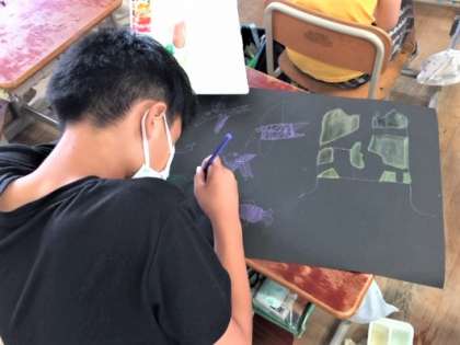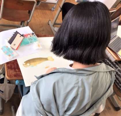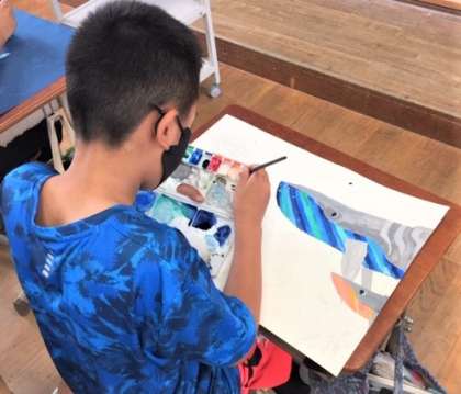 色も単色ではなく,絵の具を混ぜ合わせながら自分のイメージと合うように工夫していました。