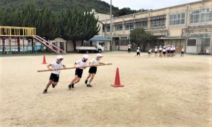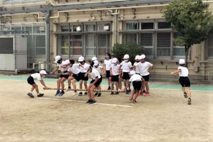 3年生も運動会に向けて競技「台風の目」の練習をはじめました。
