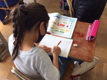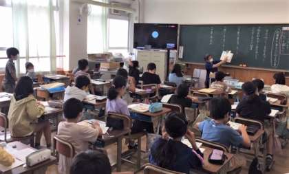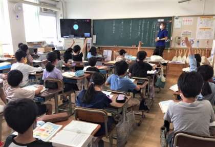 パンフレットを読んで「目立たせたいことは大きな文字で書いている。」や「文字と絵で説明されている!」など,気付いたことを話し合っていました。
