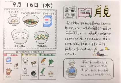 秋は空気がすみわたり,月がとてもきれいに見えます。お月見をしてもいいですね☆