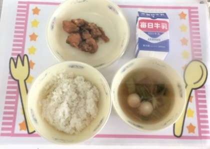 本日の献立は「油淋鶏(ヨウリンジー),牛乳,ご飯,春雨スープ」です。油淋鶏のたれにお酢が使われているので,さっぱりとして食べやすく,美味しかったです☆