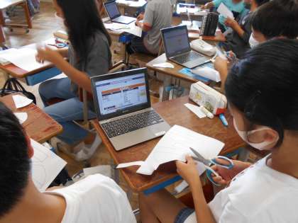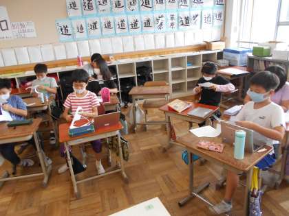 5年生の総合「働くことについて考えよう」の学習では,社会には様々な職業があることを知りながら,働く時に大切なことや必要な力について考えています。今週は「ケーキを作って売る」という仕事体験活動を通して,働くことについて考えました。上手く利益が出るにはどうしたらよいかを考えながら,活動を進めていました。