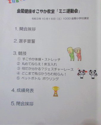 10月16日(土)に,金閣福祉会主催のすこやか教室「ミニ運動会」が講堂にて実施されました。