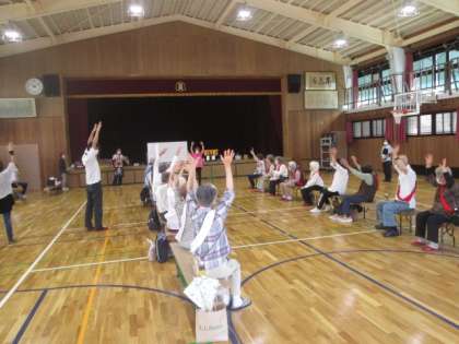 地域のお年寄りの方が参加され,体操や簡単な運動等を通して,健康の維持や親睦をされていました。お世話いただいた金閣福祉会の皆様,ありがとうございました。