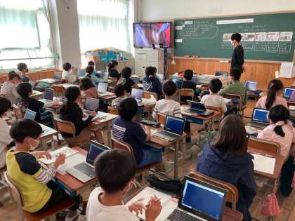 「生八つ橋のおいしさのひみつをさぐろう」というテーマで学習を進めていました。映像や資料を使って調べ,交流し,おいしさのひみつに迫っていました☆
