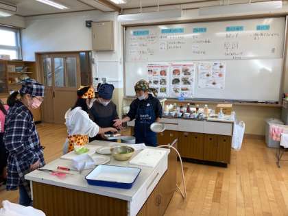 前時までに調理の目的や手順を考え,調理計画を立てました。本日はいよいよ「調理実習」!!再度,切り方やゆで方,調理の手順を確認し,『ゆで野菜サラダ』を作っていました。